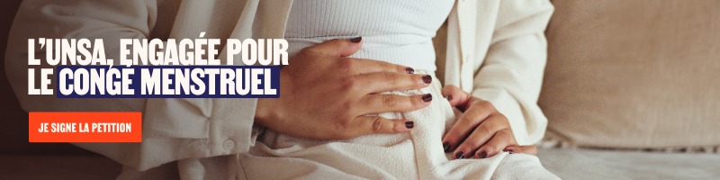 L’UNSA demande l’inscription dans la loi d’un arrêt de travail spécifique, pris en charge et sans jour de carence, un congé menstruel rémunéré et confidentiel.